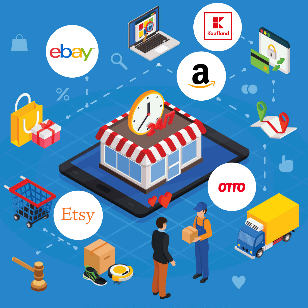 Wir unterstützen Unternehmen dabei, ihre Produkte über verschiedene Online-Plattformen zu verkaufen und bieten maßgeschneiderte Lösungen für die Integration und das Management von Verkaufsplattformen.